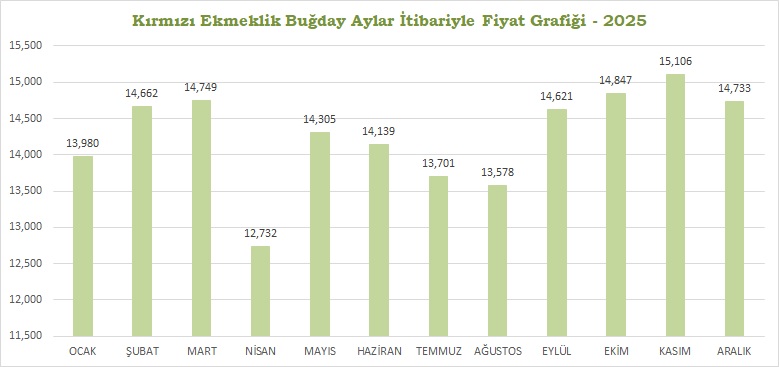 Kırmızı Ekmeklik Buğday Aylar İtibariyle Fiyat Grafiği